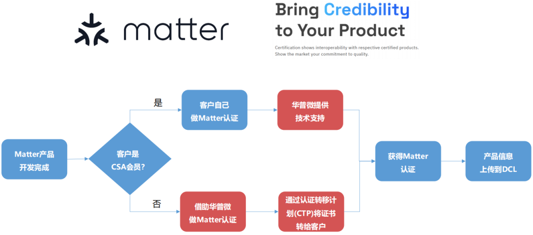 以智能照明为例,企业开发者在直接使用市场中现有的Matter模块完成相关LED灯具产品的研发后,只需通过Matter模块原厂提供的技术支持或者认证转移计划(CTP)即可快速拿到Matter认证,将产品完美接入不同生态平台之中。这种开发方式不仅可以节省企业在Matter模块上的开发投入,还可至多提升70%的研发进度,助力企业产品快速上市抢占市场!