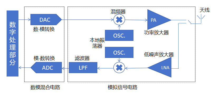 典型射频信号(无线电波)收发电路简示